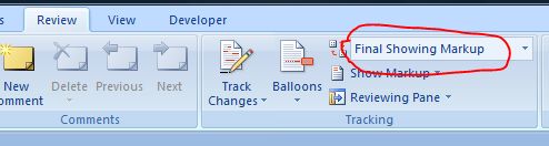 1. Make sure you can see the changes. Go to the “Review” tab on the ribbon, and check that the tracking view is set to Final Showing Markup.